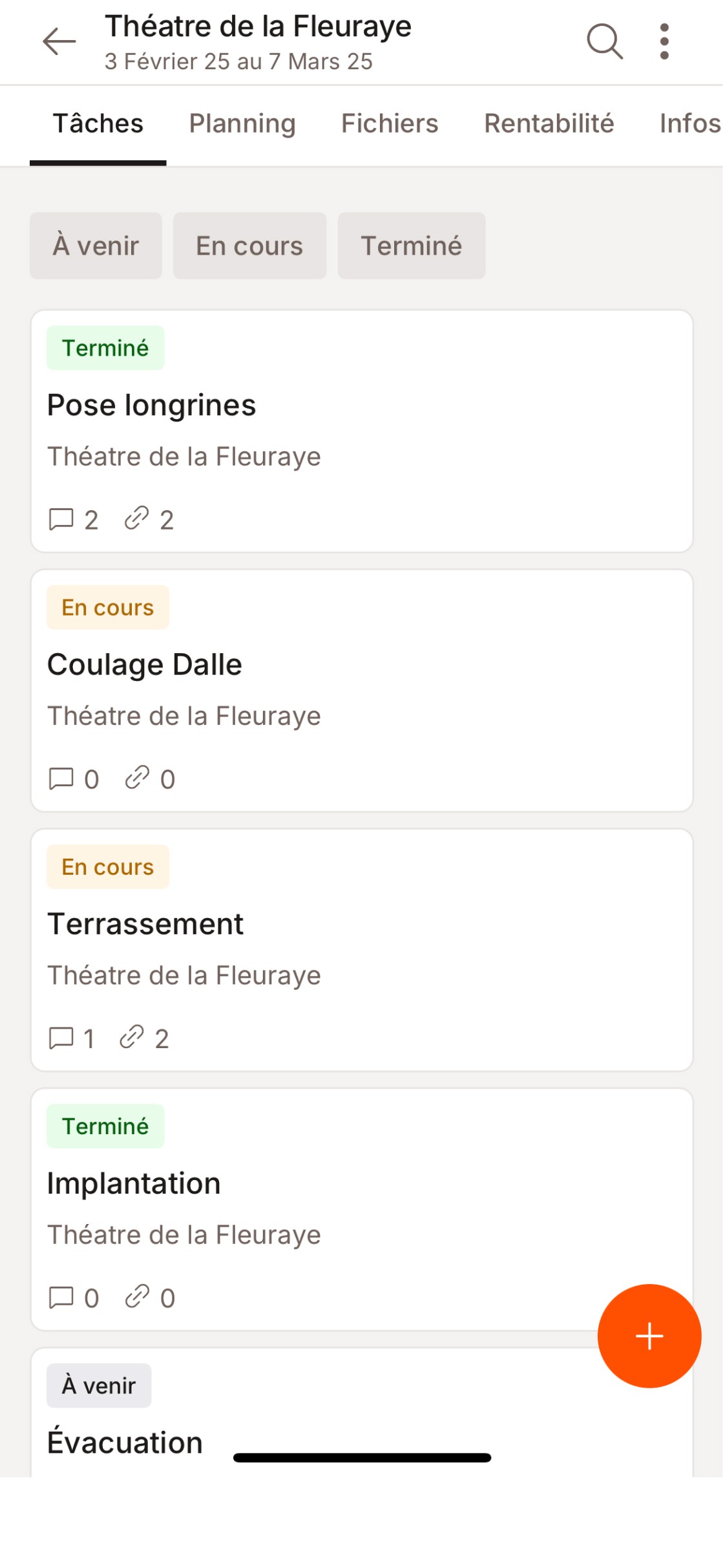 Notre plateforme tout-en-un centralise planning, suivi de chantier, rentabilité et communication. Toutes vos données sont connectées et accessibles en un clic. Gagnez en efficacité sans vous ruiner.