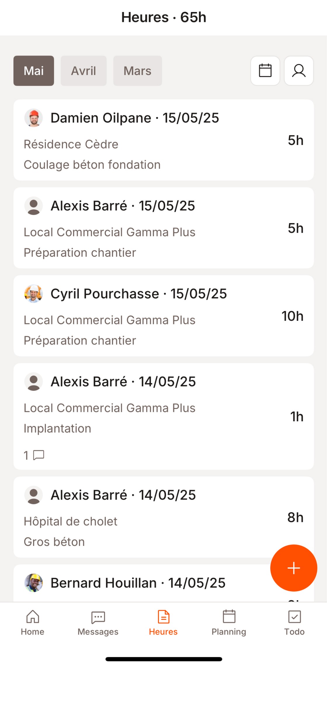 Plus besoin de jongler entre excel, les feuilles d'heures papiers, les SMS et les appels incessants. Tout est centralisé et fluide