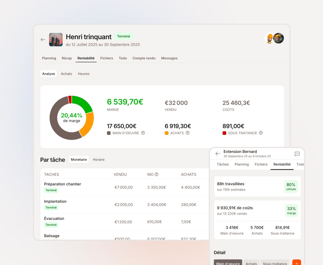 Rentabilité par chantier