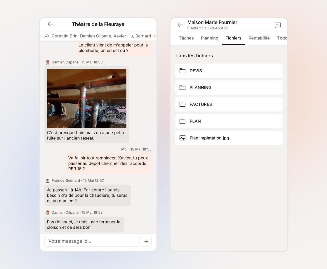 Un espace dédié par chantier avec tous les plans et documents techniques